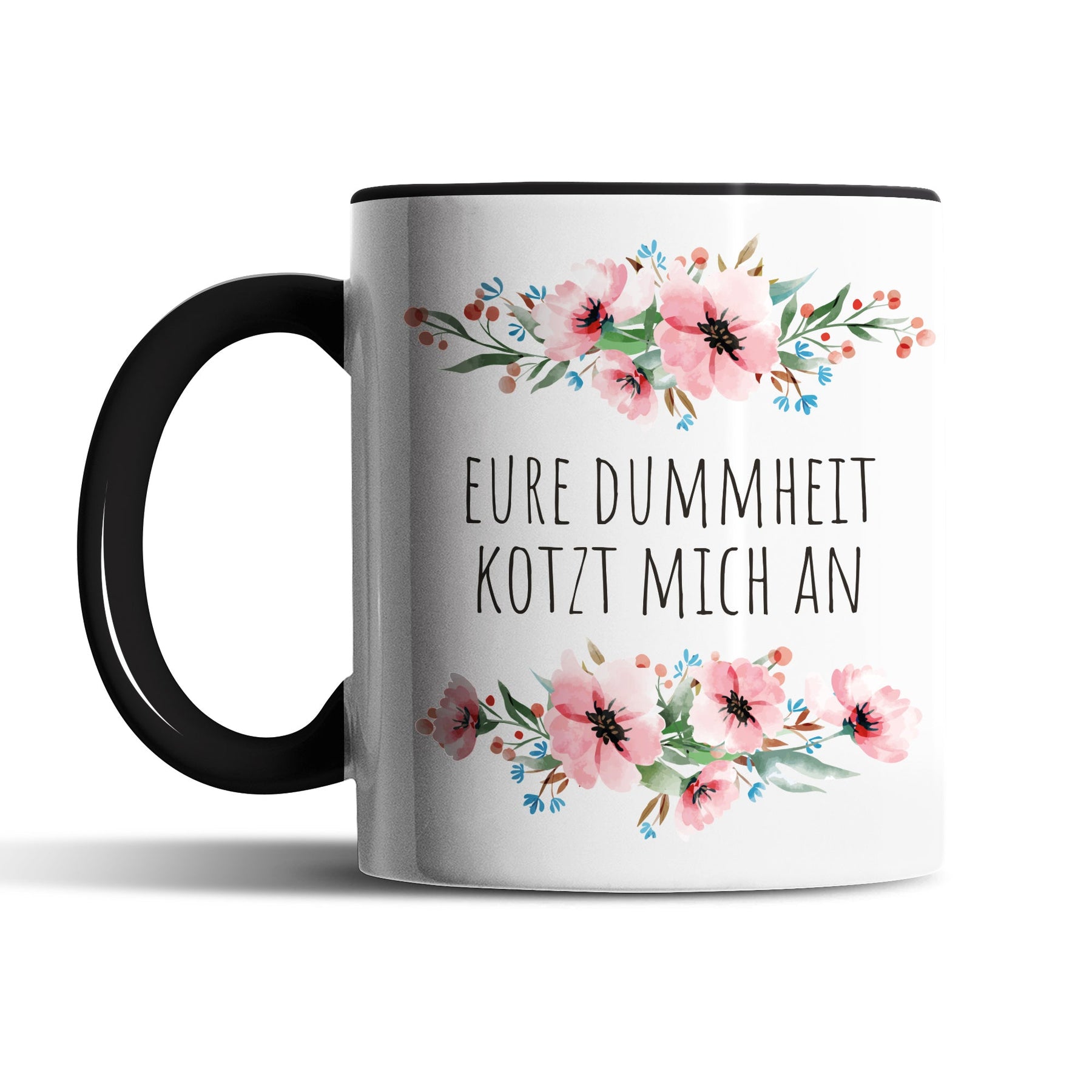 Unsere Tasse "Eure Dummheit kotzt mich an" ist für alle, die regelmäßig an der Intelligenz ihrer Mitmenschen zweifeln – und das gerne mit einem humorvollen Statement ausdrücken. Ob im Büro, Homeoffice oder als witziges Geschenk für Freunde und Kollegen, diese Tasse sorgt garantiert für schmunzelnde Blicke!
