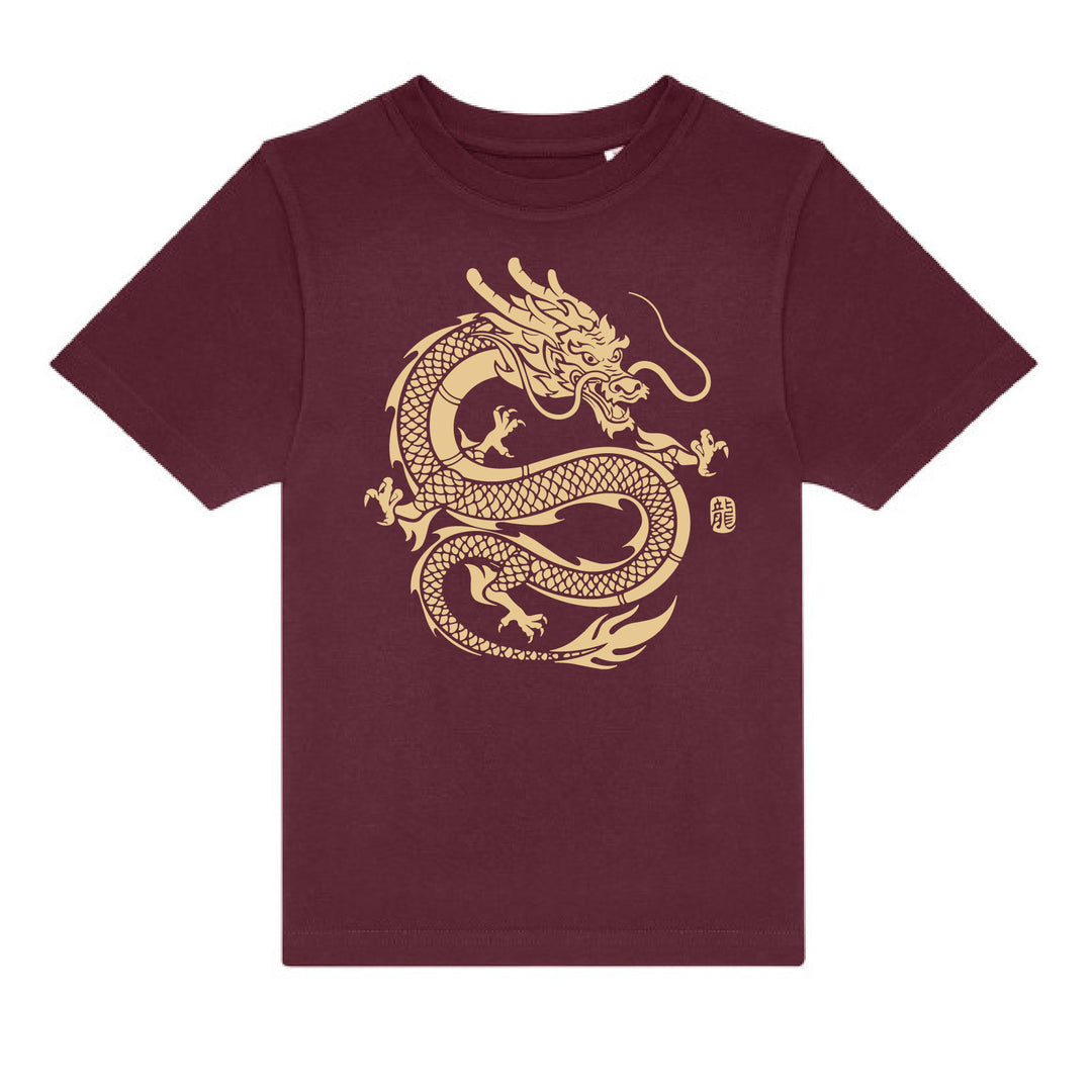 Dragon T-Shirt Bordeaux – Offizielles Tanzschule Shirt | Unisex für Kinder & Erwachsene | T-Shirt mit Drachenmotiv