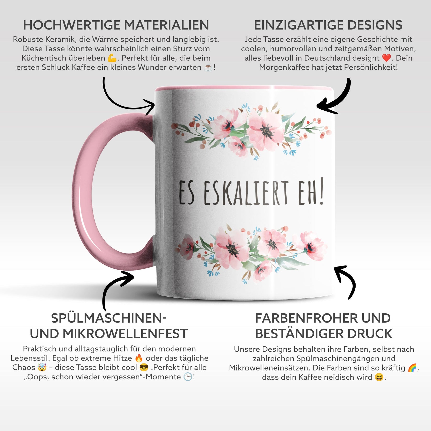 Unsere Tasse "Es eskaliert eh" ist perfekt für alle, die wissen, dass es sowieso wieder aus dem Ruder läuft. Ob als humorvolle Bürotasse, Geschenk für Freunde oder als tägliche Erinnerung, dass man sich entspannt zurücklehnen kann – mit dieser Tasse bist du bestens vorbereitet!