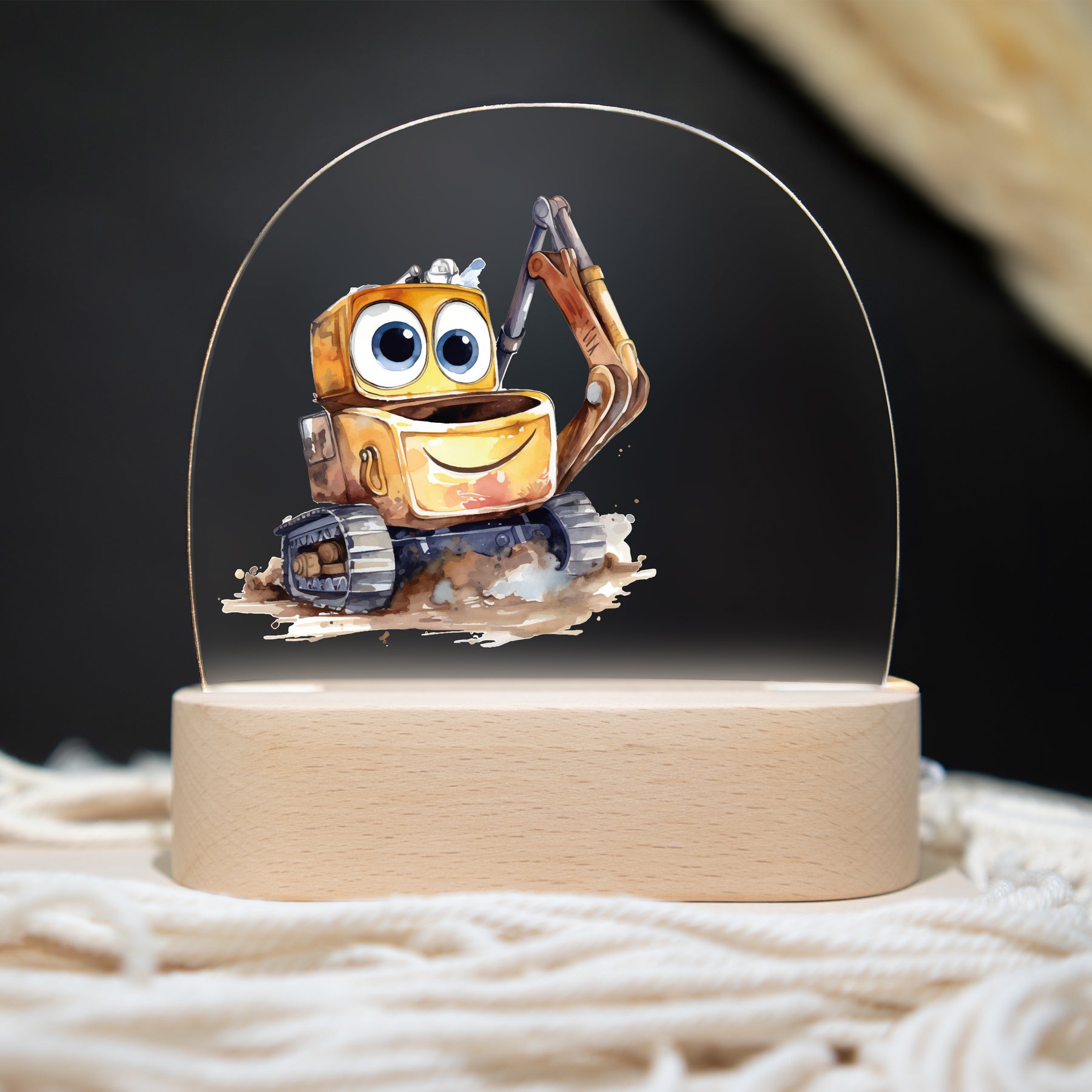 Personalisierte LED-Nachtlampe – Bagger mit Name