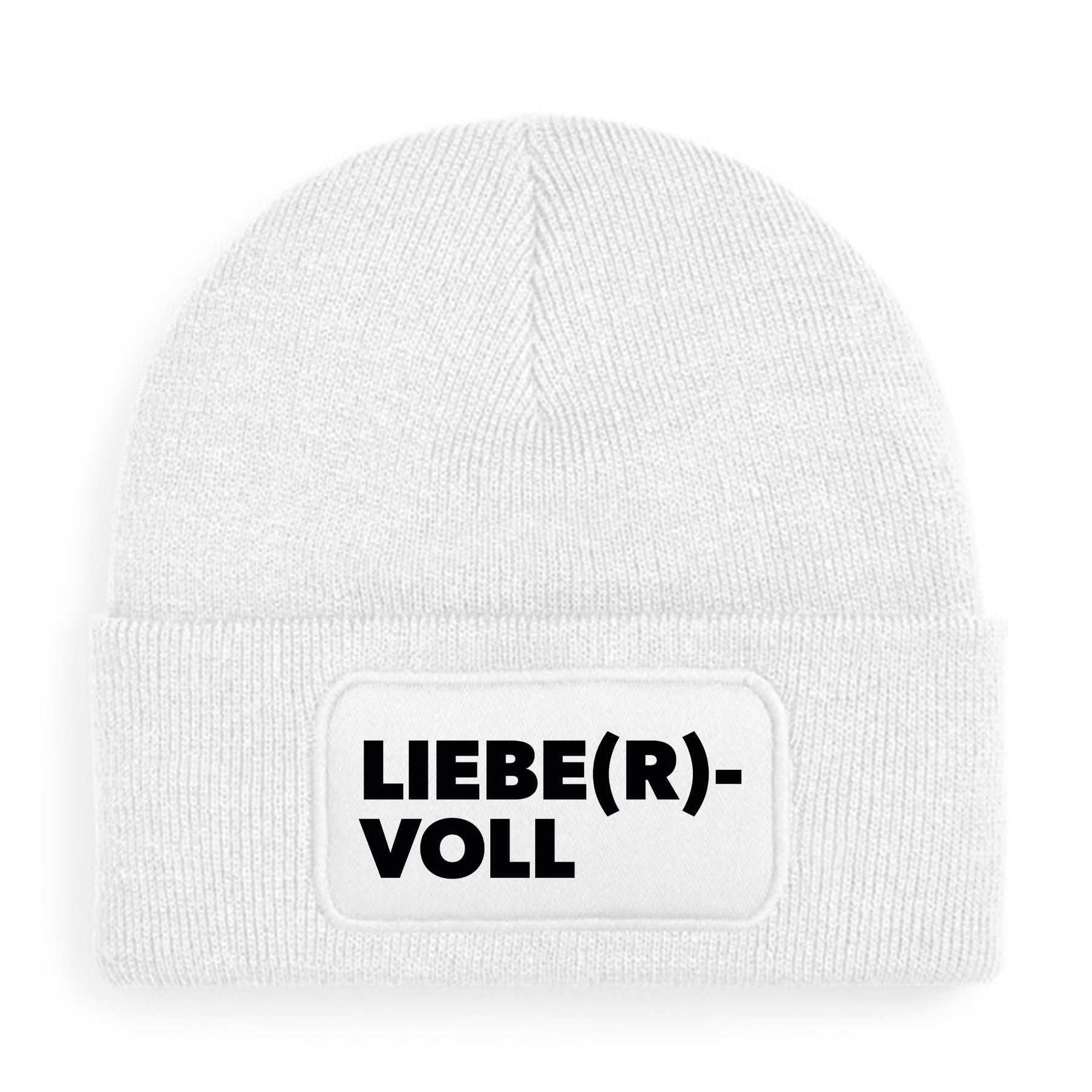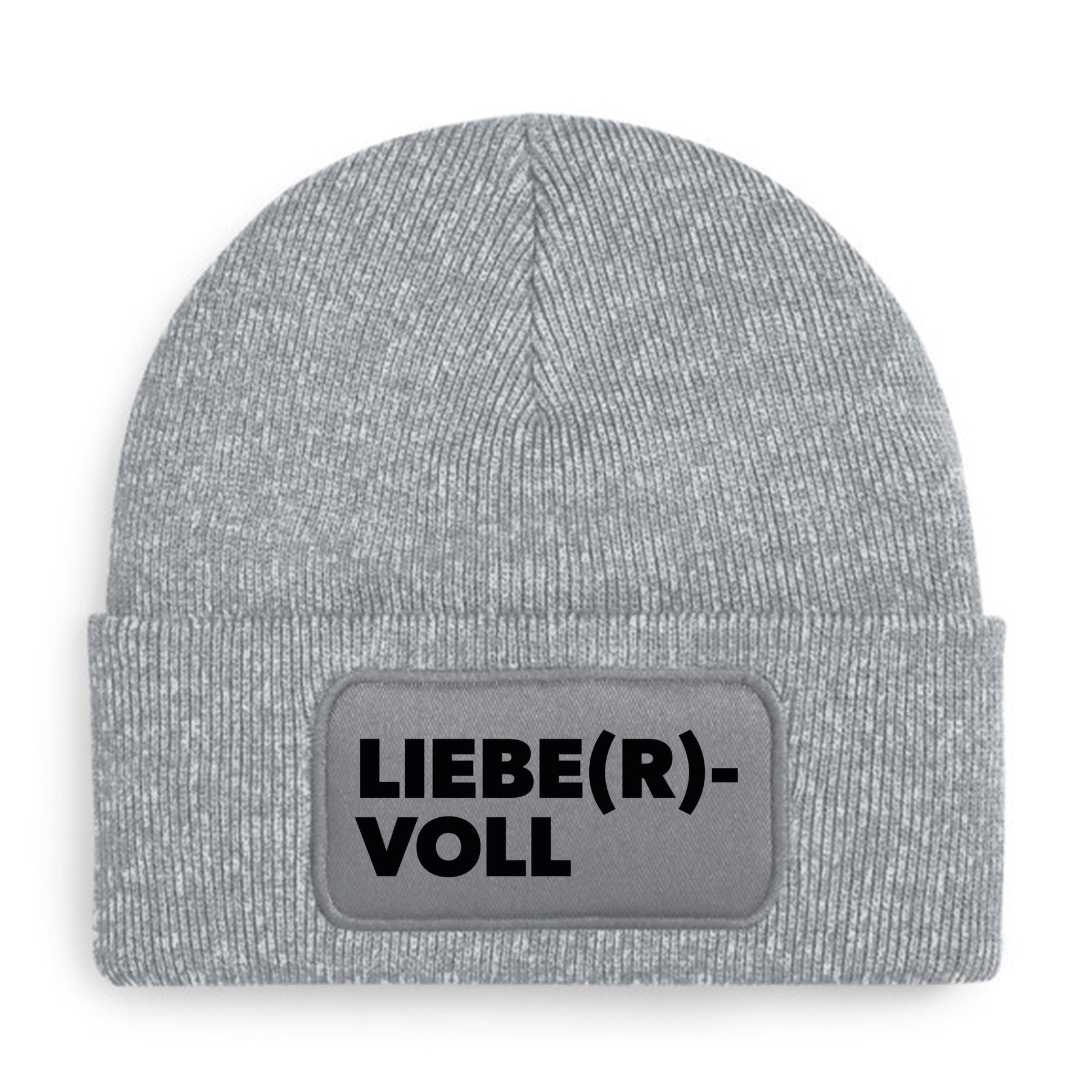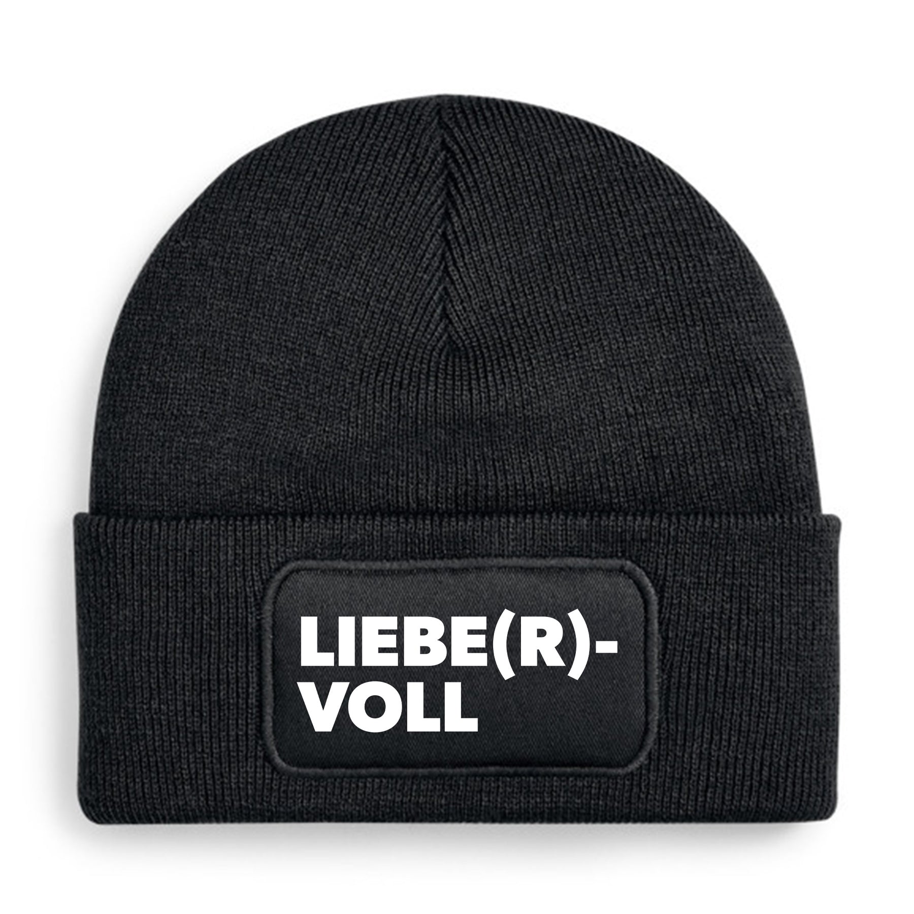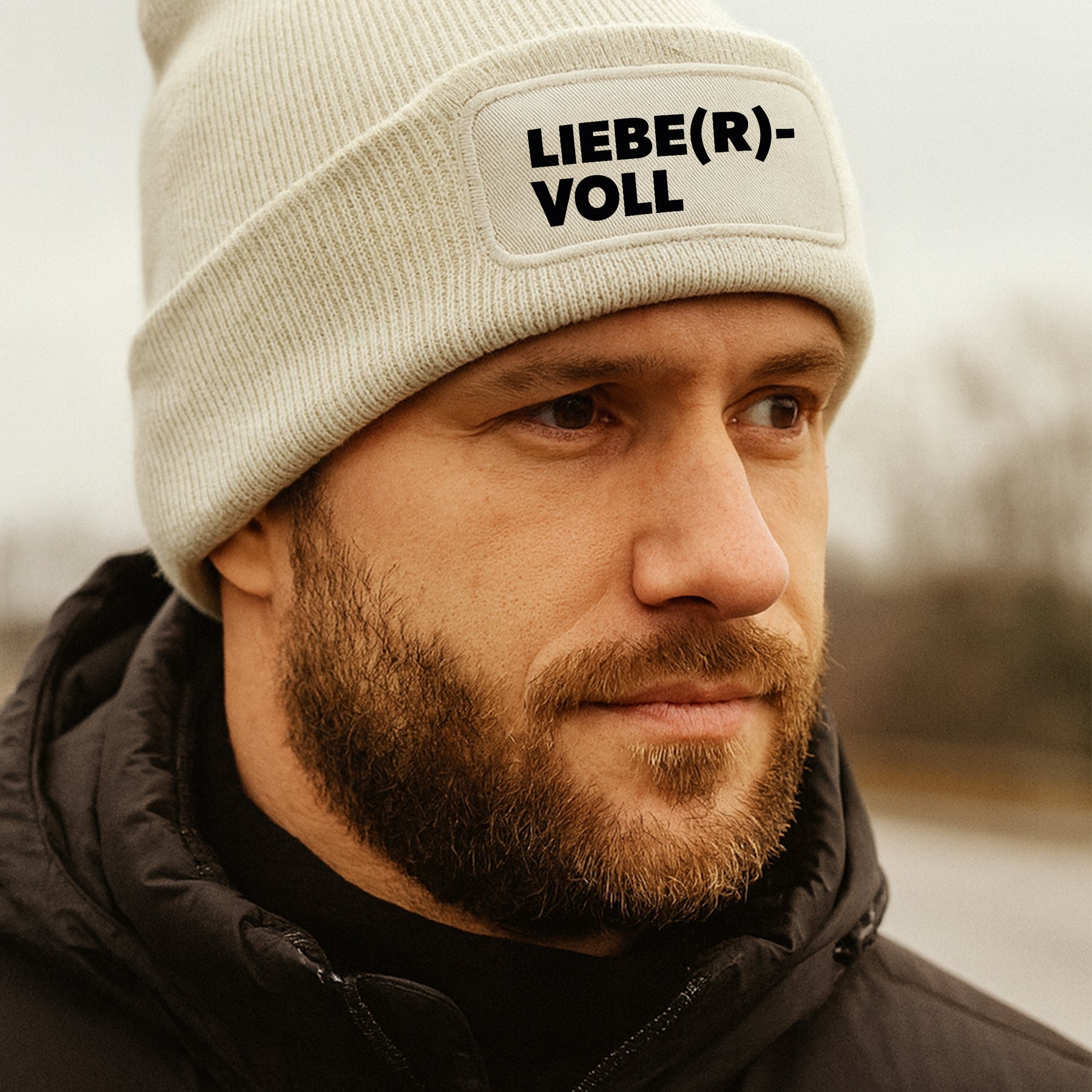 Die „Liebe(r)voll“ Beanie ist weich, doppellagig gestrickt