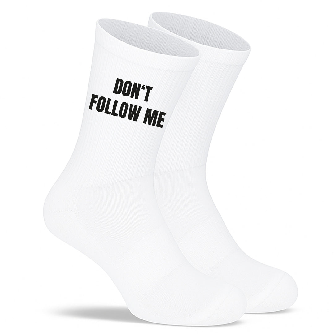 Socken „Don’t follow me, I’m lost too“ – Lustige Spruchsocken | Geschenk für Chaoten & Freigeister | Funny Socks aus Bio-Baumwolle