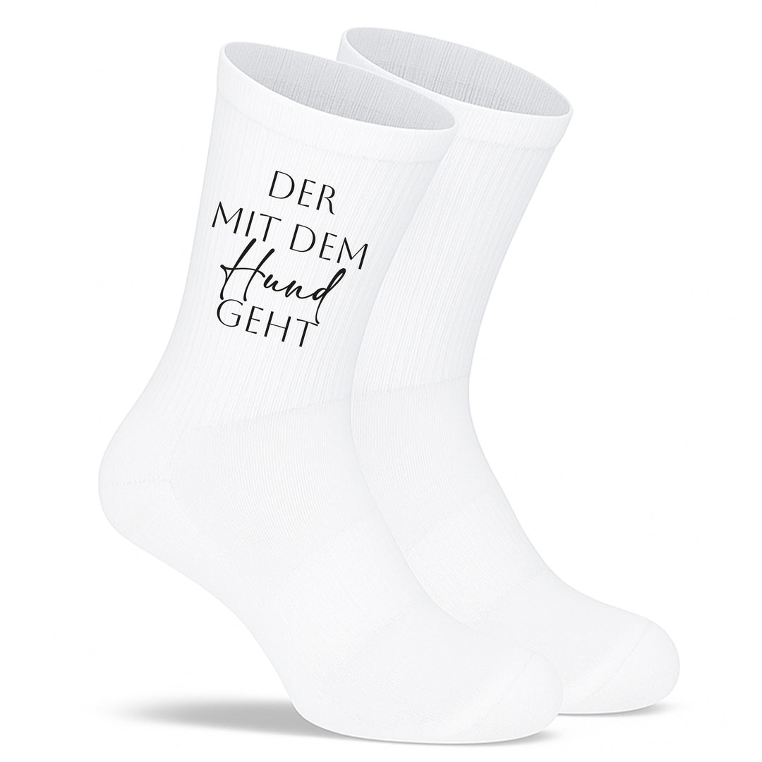 Socken „Der mit dem Hund geht“ – Lustige Hunde-Socken | Geschenk für Hundebesitzer | Fun & Tiermotiv aus Bio-Baumwolle