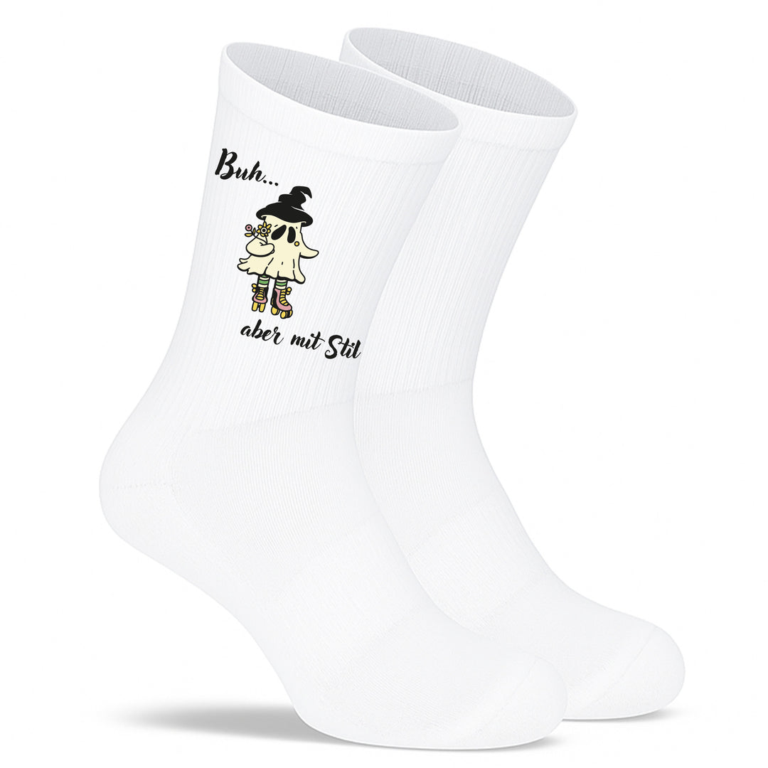 Socken „Buh… aber mit Stil“ – Lustige Halloween-Socken mit Geist-Motiv | Stilvoll gruseln | Limited Halloween Edition