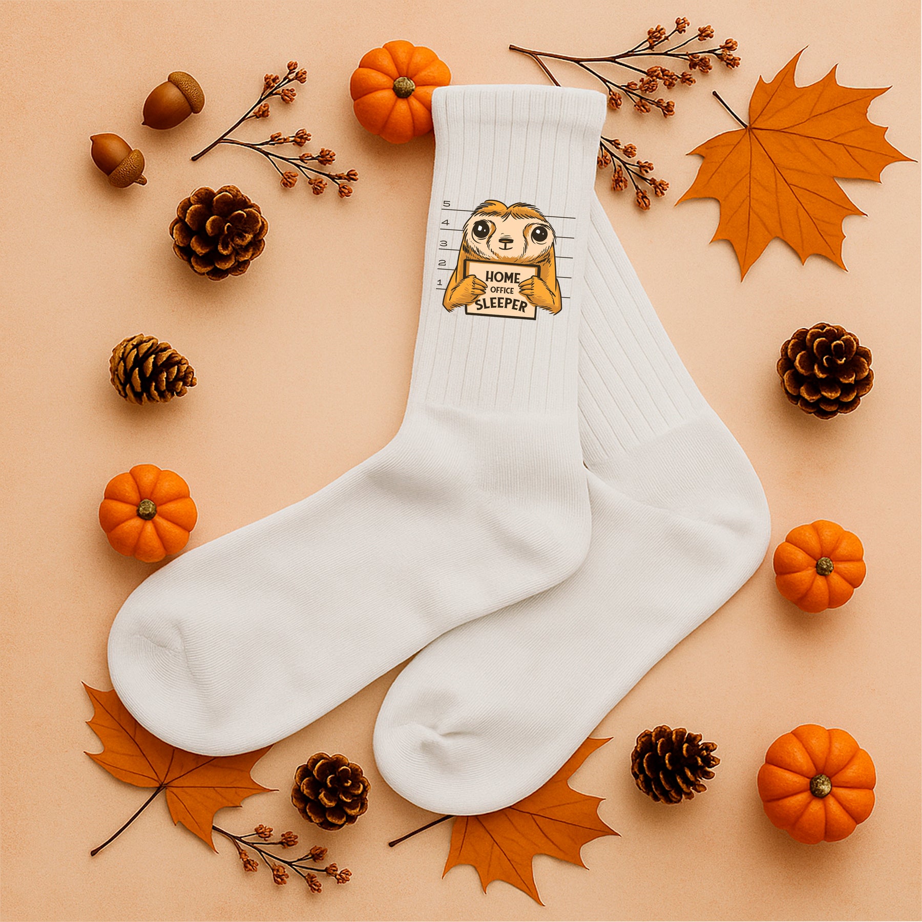 Unsere „Homeoffice Sleeper“-Socken sind das perfekte Accessoire für alle, die im Homeoffice hart arbeiten – zumindest an ihrer Entspannung.