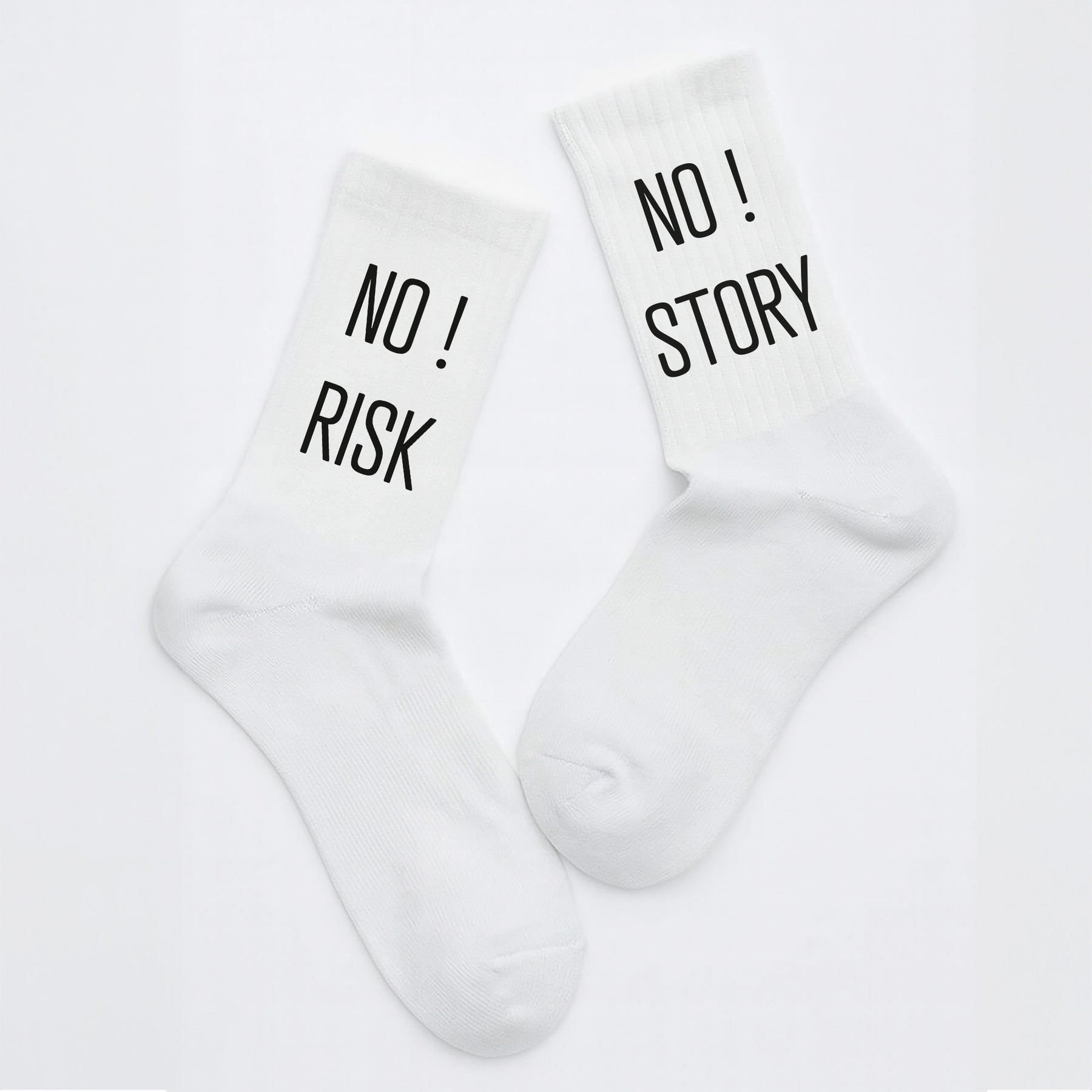 Socken „No Risk! No Story!“ – Motivationssocken | Statement Fun Socks aus Bio-Baumwolle | Geschenkidee mit Power | Made in Europe