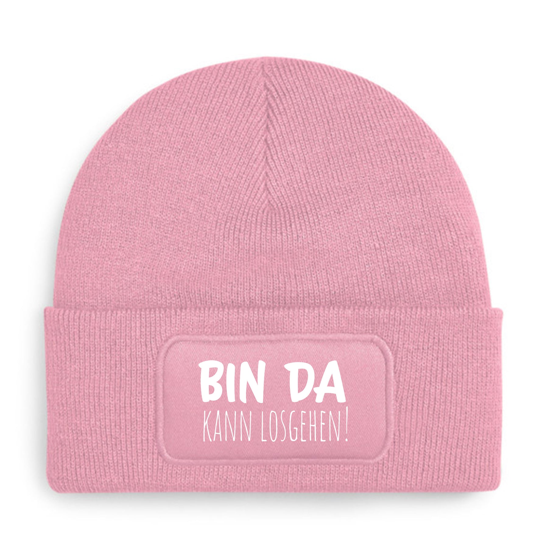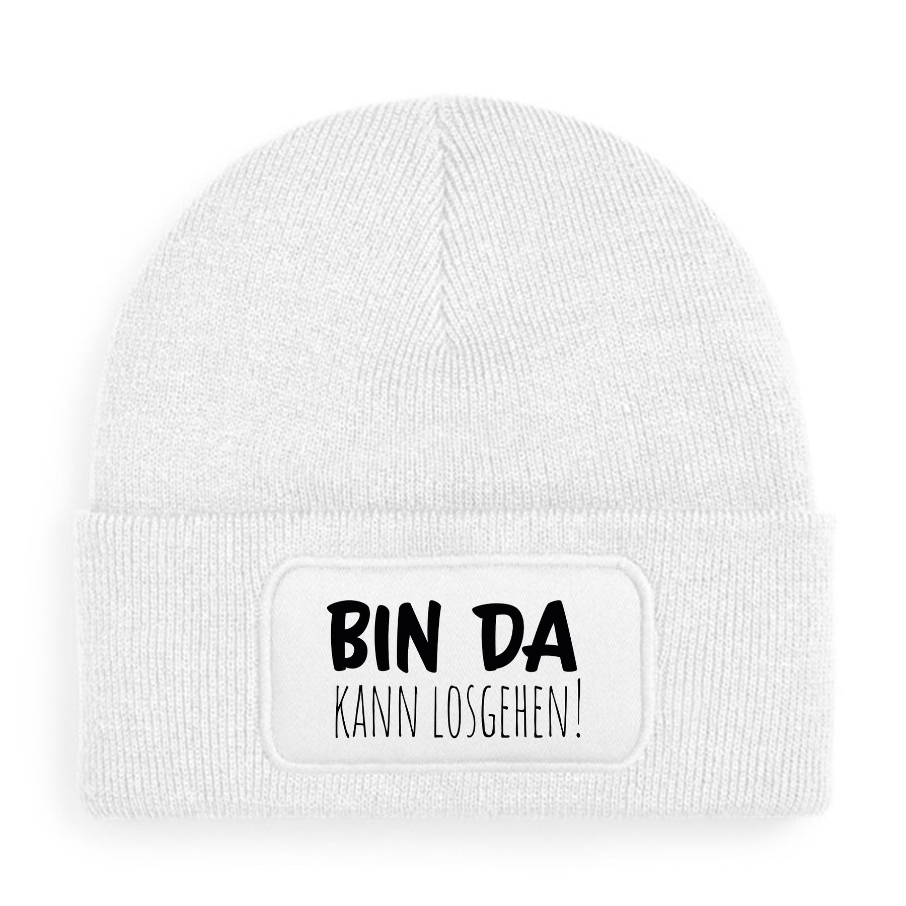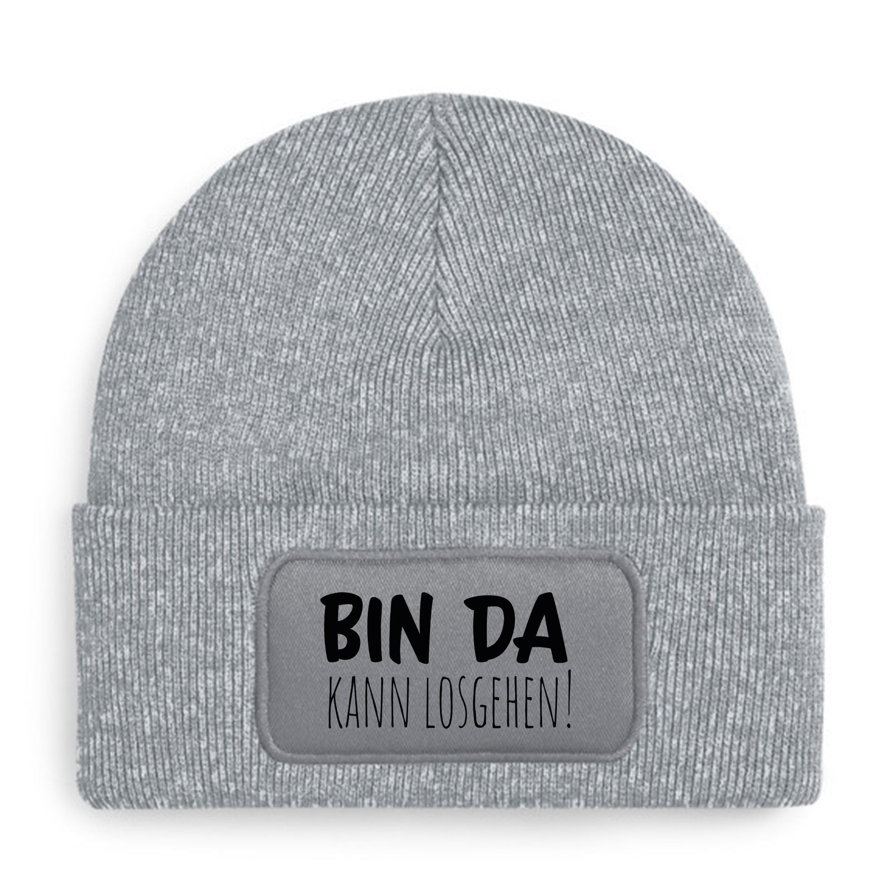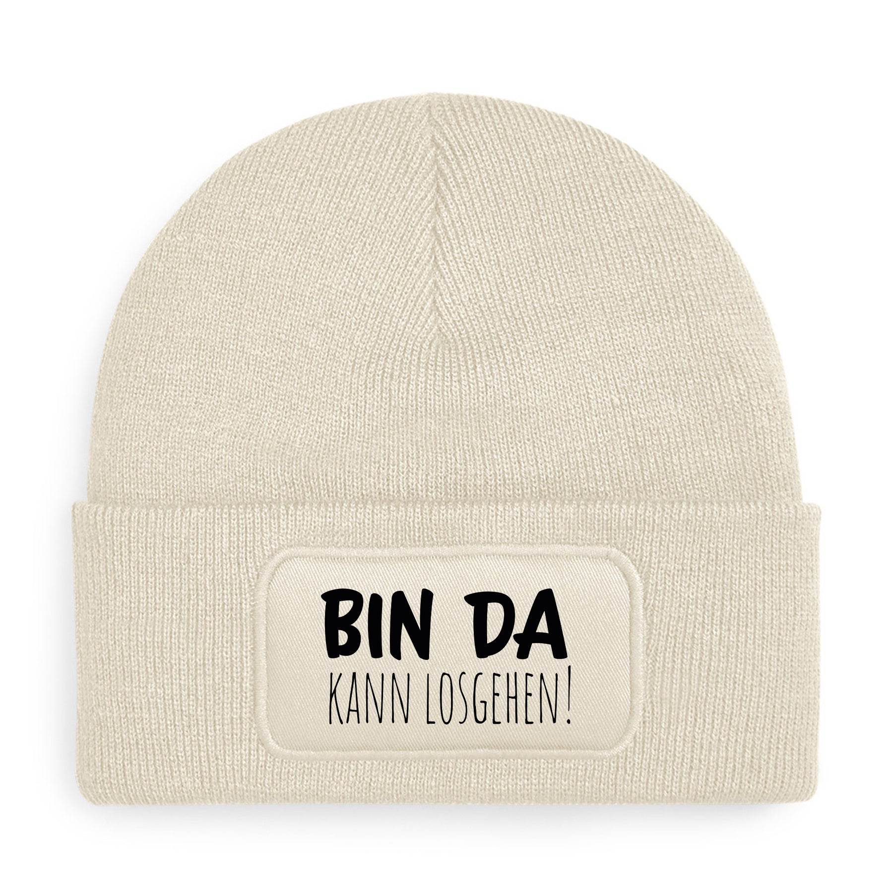 Die „Bin da – kann losgehen“ Mütze ist weich, doppellagig und hält dich warm,