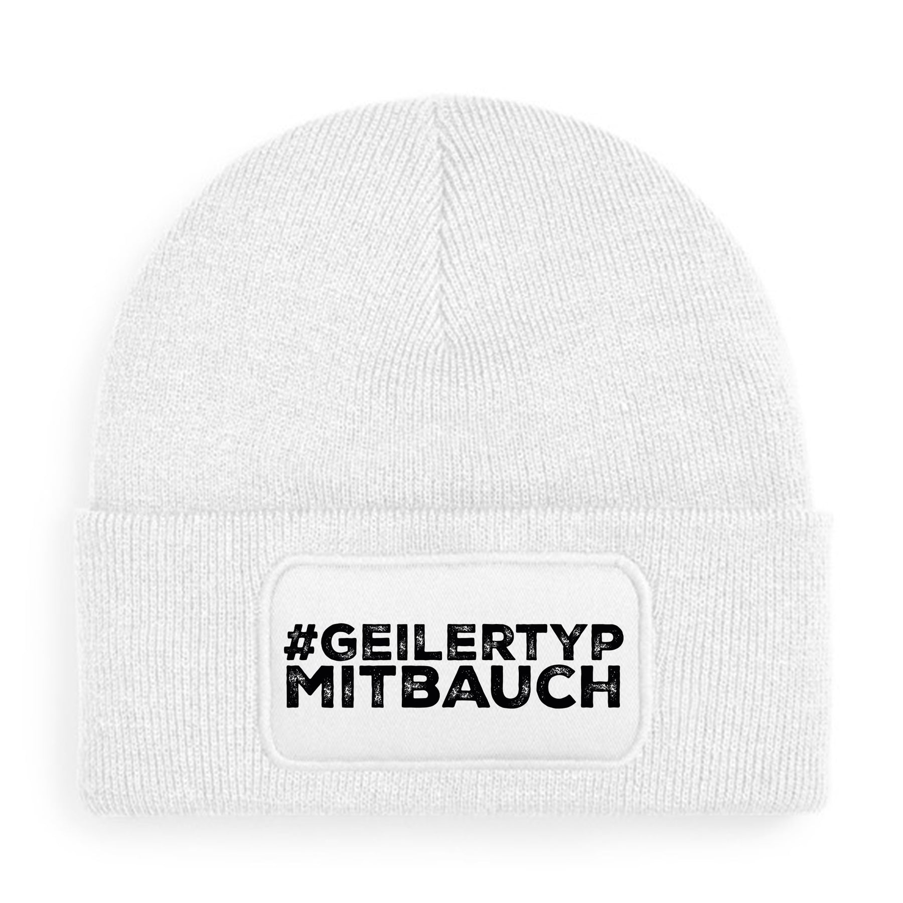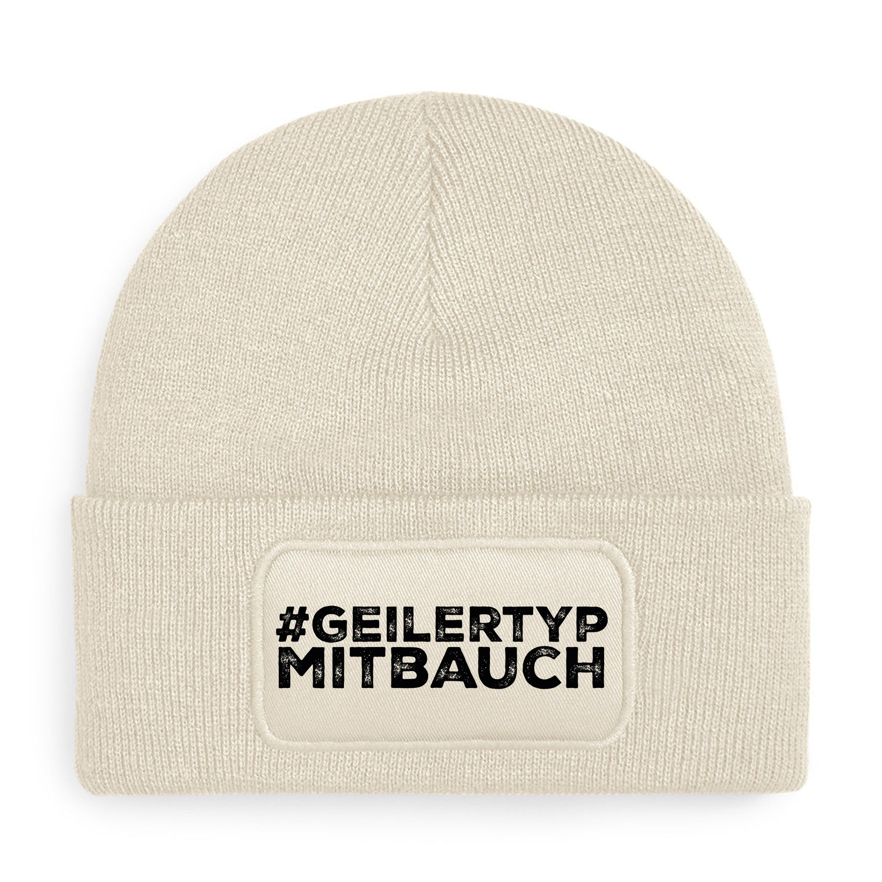 Die „#geilertypmitbauch“ Mütze ist superweich, doppellagig gestrickt